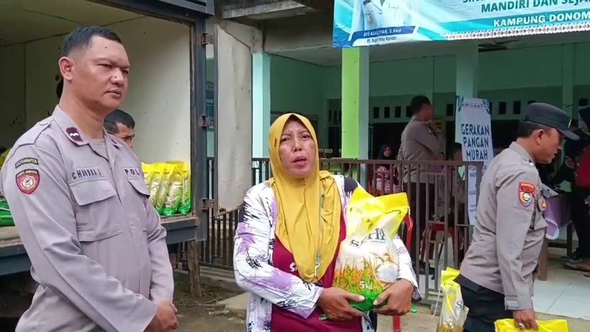 Halo Lampung – Polres Way Kanan sukses menggelar Gerakan Pangan Murah (GPM) untuk masyarakat pada Selasa kemarin (19/08) di Donomulyo Banji. Kegiatan ini mendapatkan banyak apresiasi terlebih dari Kepala Kampung dan warga Kampung Donomulyo.”Terima kasih atas terselenggaranya kegiatan ini yang di inisiasi oleh Polres Way Kanan Polda Lampung,” ujar Kepala Kampung, Heri Sugiantoro, kepada Sihumas Polres Way Kanan, Rabu (20/08/25).Menurutnya, kegiatan ini sangat membantu masyarakat dalam memenuhi kebutuhan pangan masyarakat terutamanya di Kampung Donomulyo, Banjit. Dimana diketahui beberapa harga pangan dipasaran masih terbilang cukup tinggi. “Alhamdulillah sangat bermanfaat sekali, masyarakat yang datang semuanya senang karena mendapatkan beras yang harganya di bawah pasaran,” tambahnya