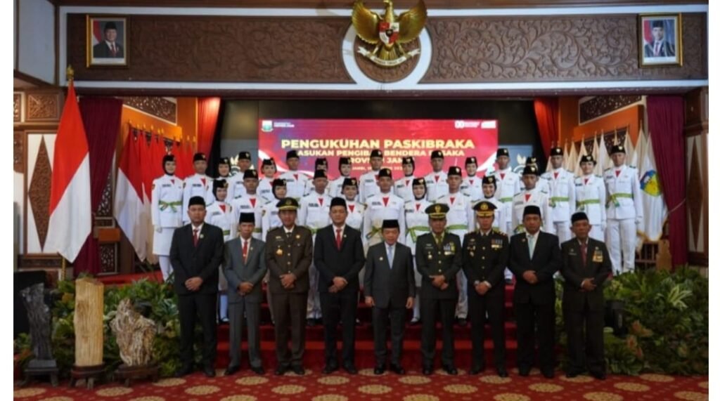 JAMBI – Gubernur Jambi Dr. H. Al Haris, S.Sos, MH mengukuhkan 54 Anggota Paskibraka (Pasukan Pengibar Bendera Pusaka) Provinsi Jambi Tahun 2025, bertempat di Auditorium Rumah Dinas Gubernur Jambi, Jum’at (15/08/2025) malam.