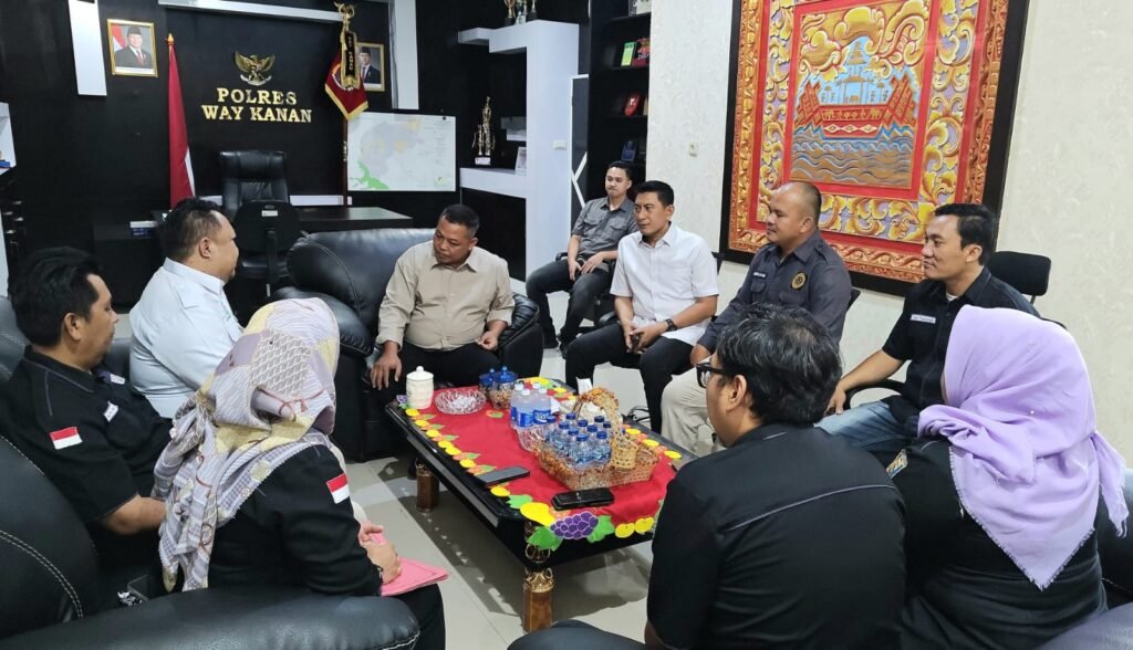 Way kanan Halo Lampung – Kunjungan tersebut disambut hangat oleh Kapolres Way Kanan AKBP Didik Kurnianto yang didampingi Kasat Intelkam AKP Mustholih, S.H., M.H. Suasana penuh keakraban tampak mewarnai pertemuan antara insan pers dan jajaran kepolisian di Mapolres Way Kanan.