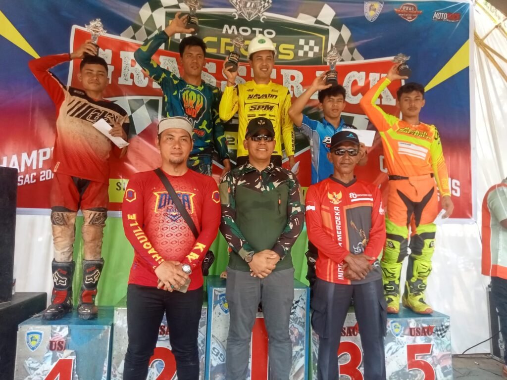 BLAMBANGAN UMPU, Halo Lampung – Sekitar 3 ribuan lebih warga Kabupaten Way Kanan dan sekitarnya, antusias dan bersuka cita menyaksikan pagelaran event Moto Cross Grastrack USAC 2025 di Sircuit Abenk Bukit Superli, Baradatu, Minggu (24/08/2025). Event Moto Cross Grastrack USAC 2025 diikuti oleh 63 pembalap, dari berbagai Kabupaten di Provinsi Lampung, memperebutkan 16 kelas atau kategori. Adapun 16 kategori atau kelas yang diperlombakan adalah, Bebek Modifikasi Open, Sport dan Trail Open, Ffa Open, Bebek Standar Pemula U18, Ffa Pemula U18, Bebek Standar Non Pro, Ffa Non Pro, Bebek Standar (Way Kanan, Lampung Barat, Lampung Utara, Tanggamus), Ffa Lokal Way Kanan, Adventure Non Pro, Rbt Non Pro, Mx 50 Cc, Minitrail, Μini moto, Rbt Lokal Way Kanan. Salah seorang peserta asal Kampung Umpu Kencana, Blambangan Umpu, Roni Agustiawan yang mendapatkan 3 gelar Trofi juara, menerangkan motivasinya mengikuti event Grastrack tersebut, ingin meramaikan dan memeriahkan acara tersebut. “Saya Ingin berpartisipasi di Grastrack Way Kanan, yang akhir akhir ini jarang ada event untuk Grastrack,” ungkap Roni.Lebih lanjut Roni mengungkapkan, menurut Roni, Kabupaten Way Kanan jarang diadakannya event Grastrack, berharap agar event tersebut digelar secara rutin di Kabupaten setempat