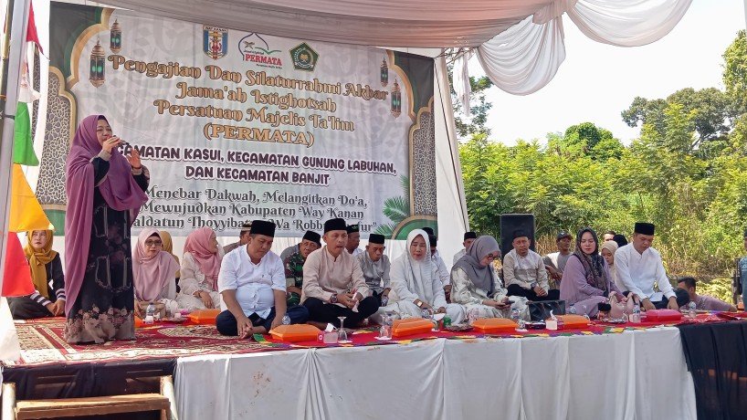 Hadirin yang kami hormati, PERMATA hadir untuk menebar dakwah dengan cinta. Hari ini kita tidak hanya berkumpul, tetapi kita sedang melangitkan doa untuk seluruh warga Way Kanan. Mari kita buktikan bahwa melalui majelis taklim, perempuan bisa menjadi benteng utama terwujudnya negeri yang thoyyib lagi penuh ampunan,” ujar Sunariah dengan penuh semangat.