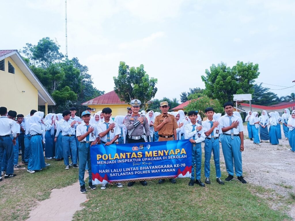 Kehadiran Kastlantas Polres Way Kanan bertindak sebagai pembina upacara bersama personel Satlantas Polres Way Kanan disambut baik oleh Kepala Sekolah, dewan guru dan siswa – siswi SMAN 2 Blambangan Umpu, Way Kanan.